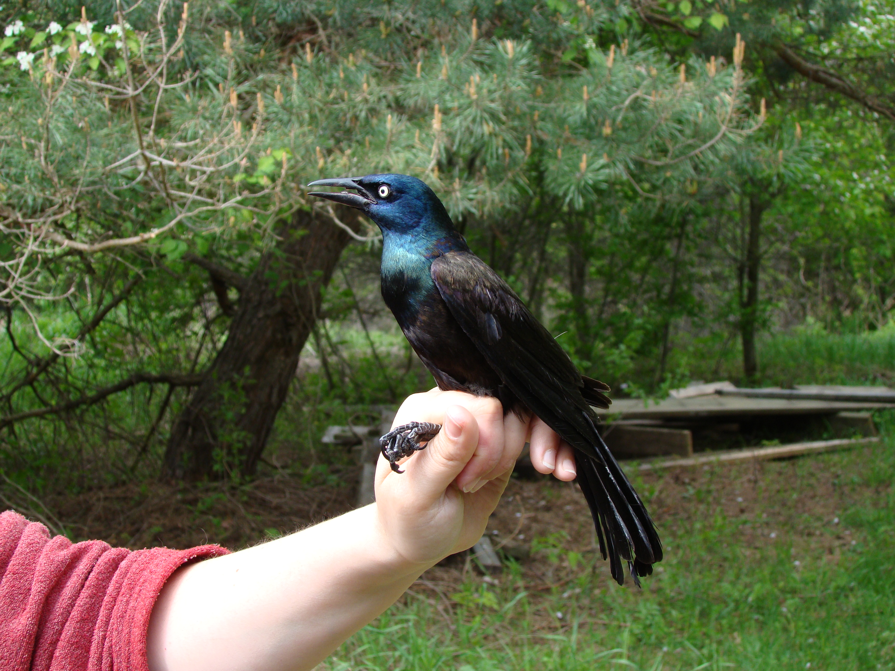 On our return, we had a good close up look at a magnificent Common Grackle which was being registered. (The two photos below).